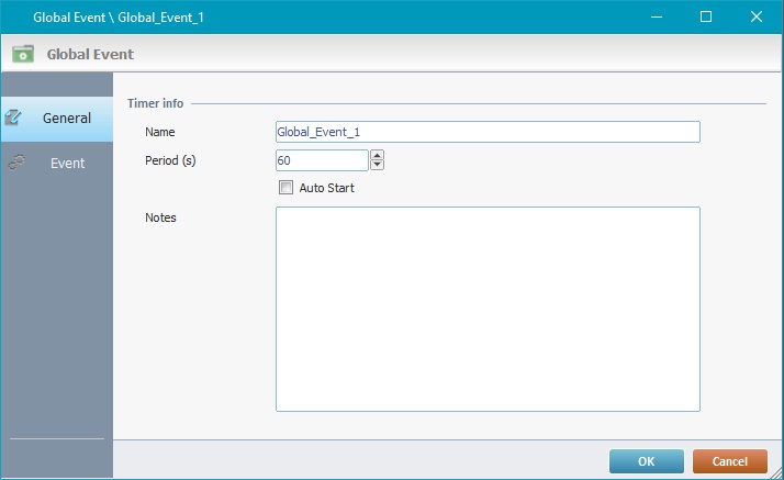 6. If required, check the "Auto Start" option. This means that the global event starts at the same time as the application.