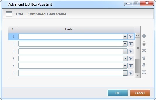 Right-click the "Title" row and select "Combined Value". Fill in the table of the resulting window as displayed below: |