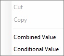The following windows represent examples of both options being selected on the table rows of the "General" tab ("Combined Value" and "Conditional Value"):