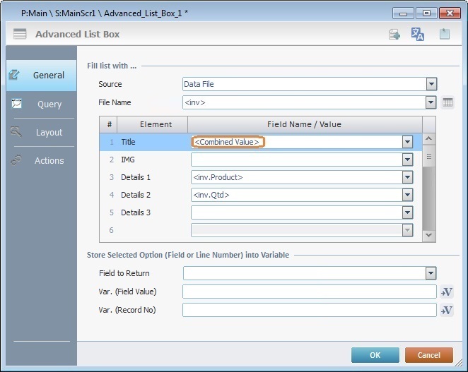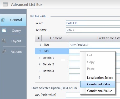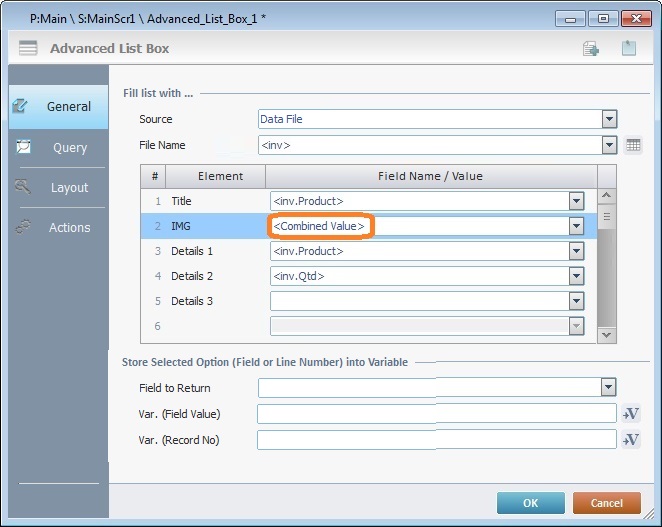 When dealing with image elements, the Combined Value operation is meant to combine several values to define the path for the image to use in the Advanced List Box.