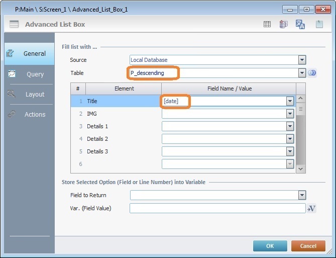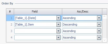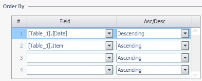 7. If the data source for this control is a Local Database, the "Order By" table will be available to sort the order of the defined table fields.