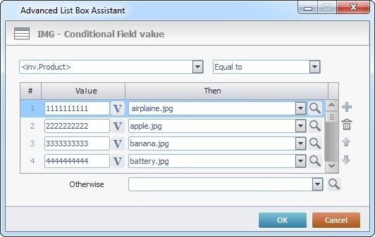Right-click the "IMG" row and select "Conditional Value". Fill in the table of the resulting window as displayed below: |