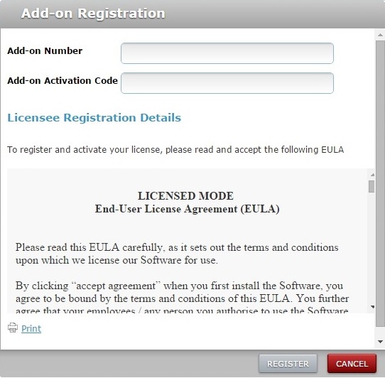 4. Enter the add-on number and activation code (information provided by the "Add-on Delivery Notification" email).