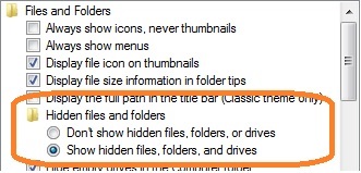 Ex: In a PC with Windows 7, open the "Folder Options" window (Control Panel > Folder Options) and check the corresponding option: