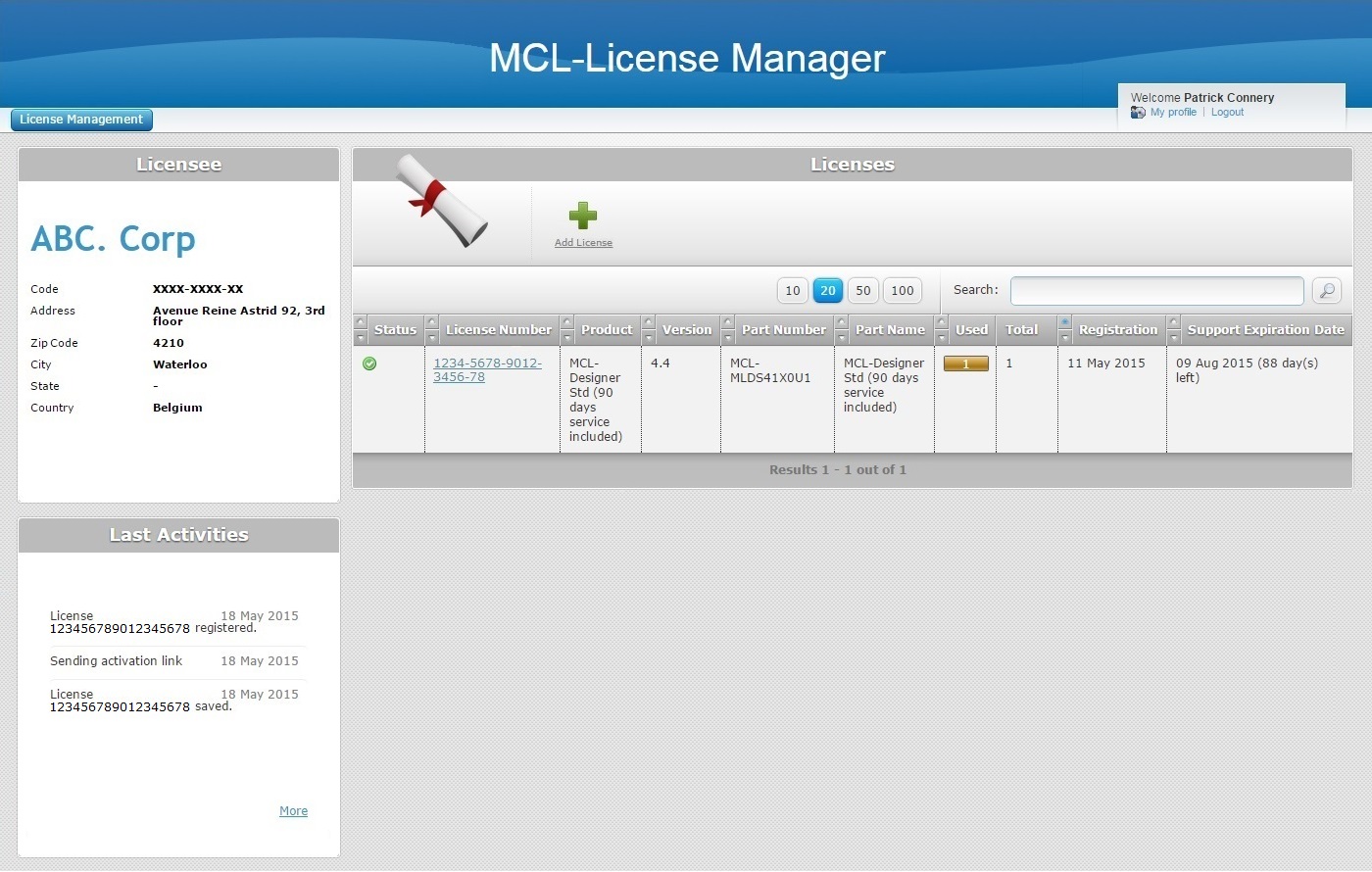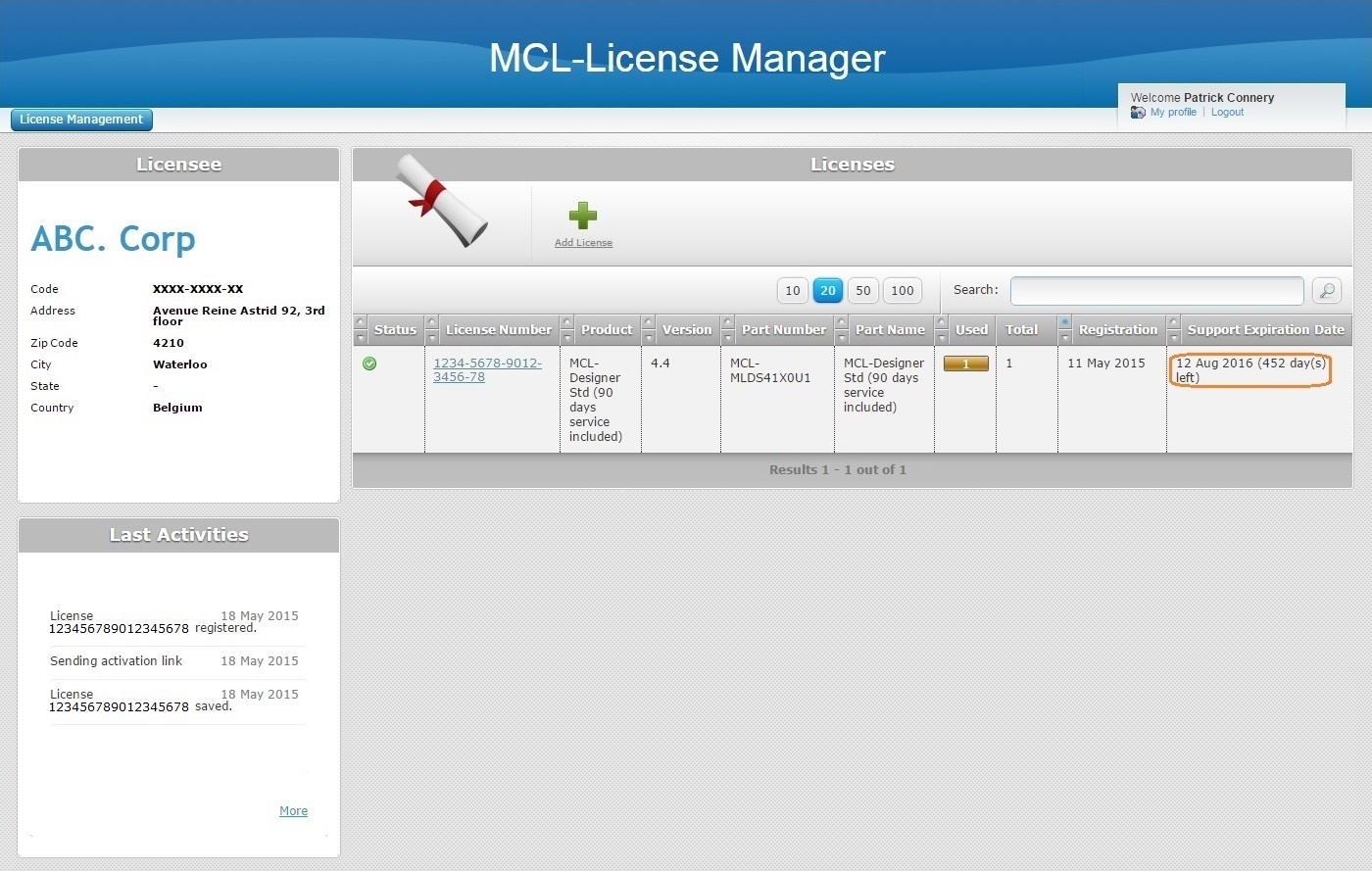 or wait for the countdown to end. This opens your MCL-License Manager account, in the "Licenses" page.