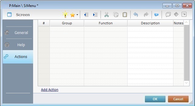 1. In the "Actions" tab of a screen (located in the properties window of a screen).