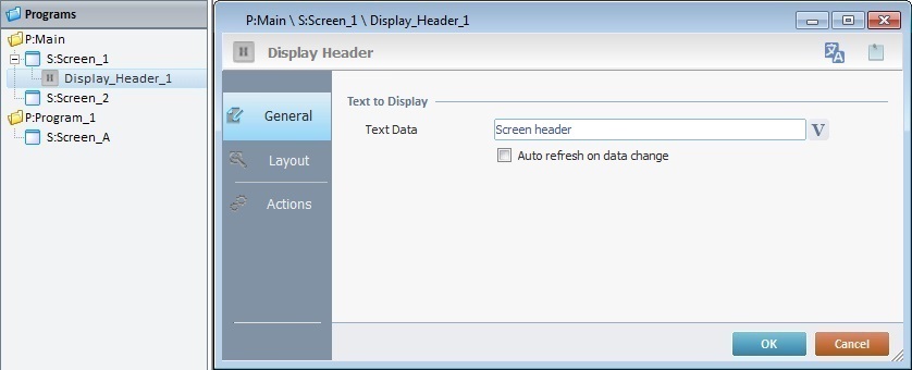 Add a header to a screen by dragging a Display Header control