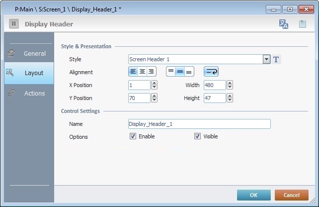 Adding a Display Header Control to a Screen