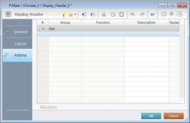 Default action: "Click" - Is triggered when the operator clicks the Display Header control.