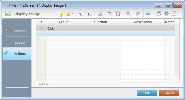 Default action: "Click" - Is triggered when the operator clicks the Display Image control.