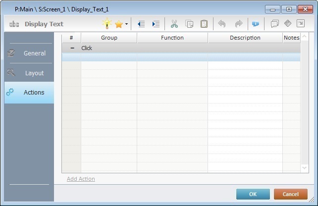 Default action: "Click" - Is triggered when the operator clicks the Display Text control.