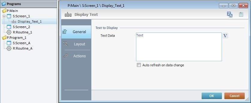 4. Check the "Auto refresh on data change" option to enable an automatic update of the visible information. In other words, whenever the data within a variable is modified, the variable being displayed on screen is automatically updated.