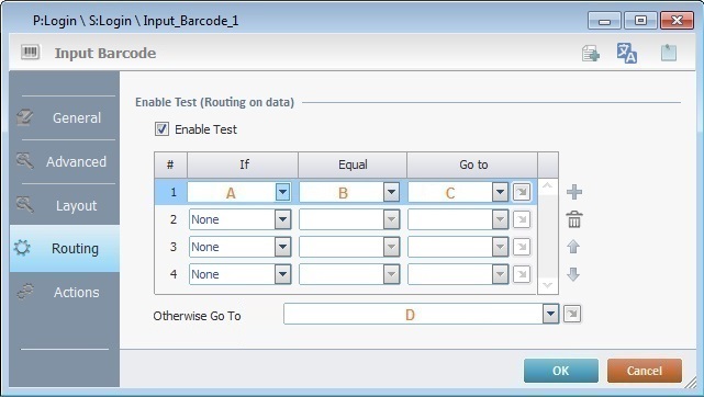 28. In the "Otherwise Go To" box, select a target location (D), in case the "If Condition" is false. Either use the drop-down list or click