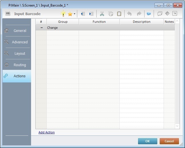 This action is used to attribute a keystroke function (in a virtual or hardware keyboard) to the Input Barcode. |
