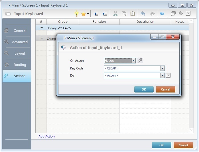 This action is used to attribute a keystroke function (in a virtual or hardware keyboard) to the Input Keyboard. |