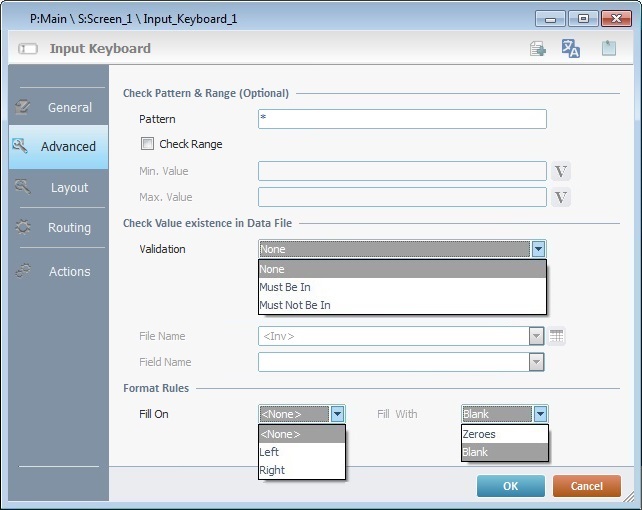 16. If required, implement formatting rules for the data that is keyed in by the operator. (Maintain the default "None" option if input formatting is not necessary.)