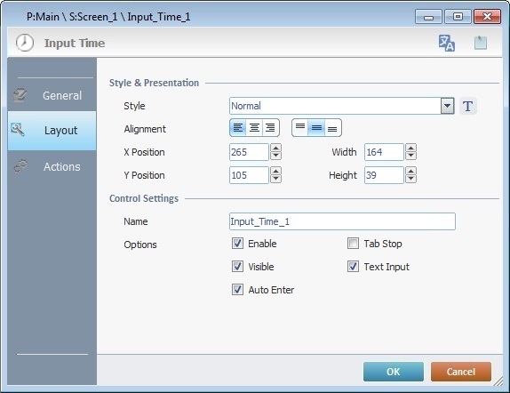 5. Enter an "Initial Time" (time value to be displayed when the screen starts) in the corresponding box to be displayed in the Input Time control OR click