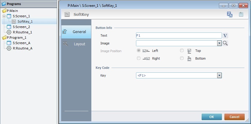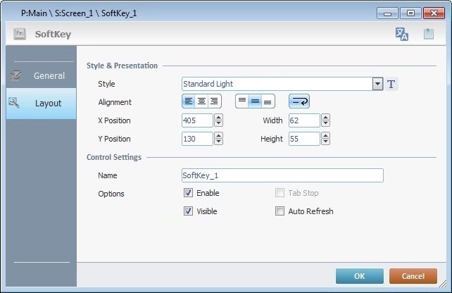 3. In the "General" tab, add text and/or an image to the SoftKey control which is displayed on the device's screen.