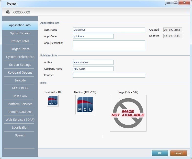 If required, modify the application's name. This name represents the application in the MCL App Desktop environment (the name below the application's shortcut icon).