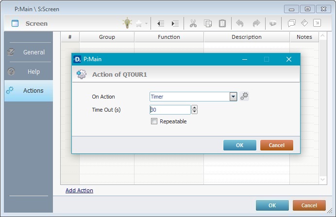 To Add Actions to a Screen or Control