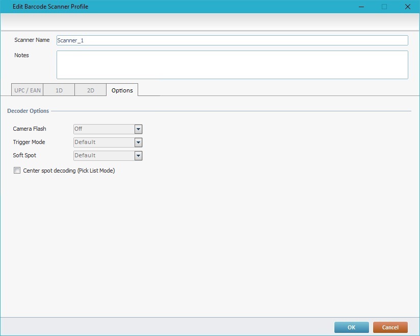 •The "Center spot decoding (Pick List Mode)" option only affects the devices that use compatible "imager barcode scanners" (ex: Zebra devices and some Panasonic devices).