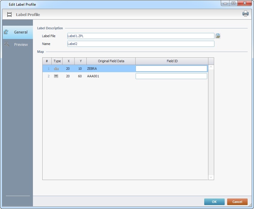 This information is used by the "Print Label" process to help map each label field for printing.