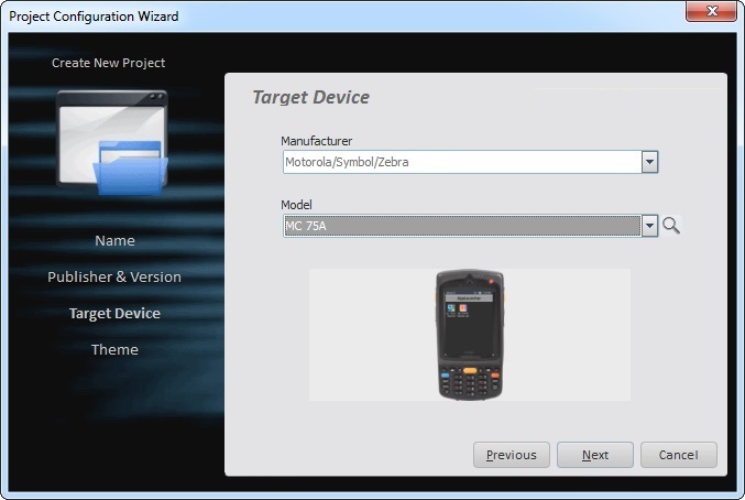 7. Select the manufacturer and the device type (in the "Model" box) for which the application is being designed for, from the drop-down.