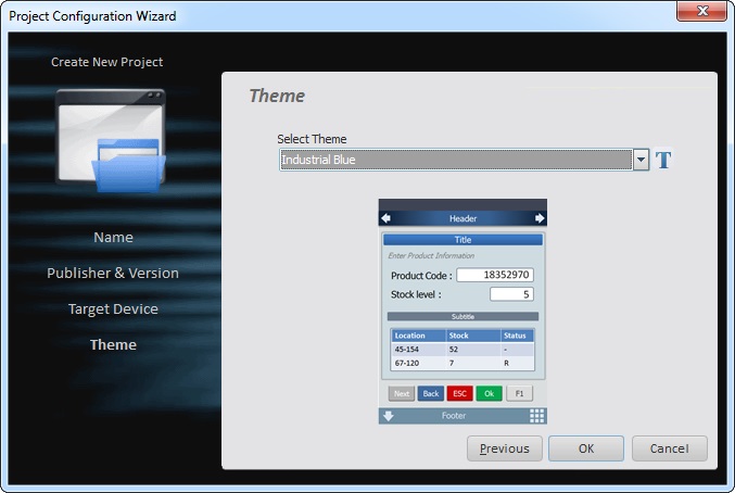 Theme - A theme determines the layout of buttons, menus and other display elements in the screens of a project.