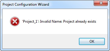 without entering an alternative project name, a message box opens informing you of the project name's duplication.
