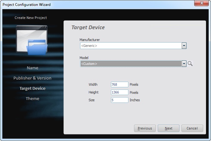 If you intend to customize the screen of the project's target device, select the "<Generic>" manufacturer.