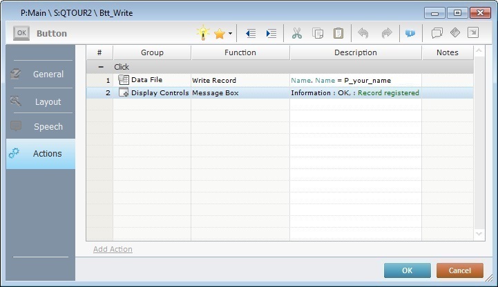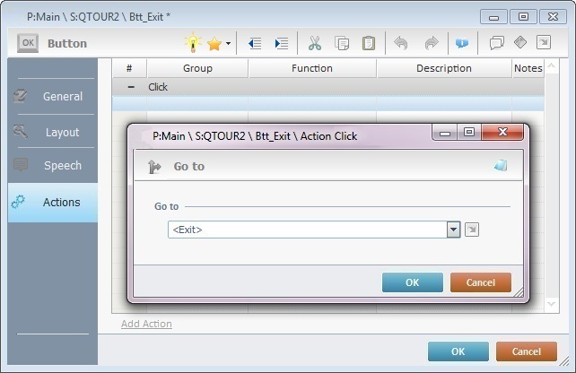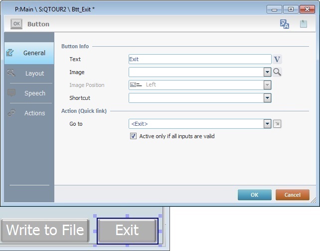 This procedure opens another dialog box where you can specify the point of arrival when the button is pressed. In other words, when the operator presses this "Exit Button" on the device, he exits the program.