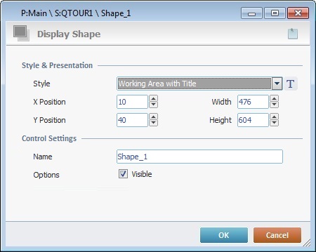 Ex: Click the Display Shape control and drag it onto the "QTOUR1" screen.