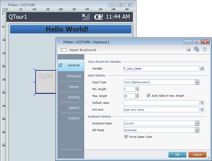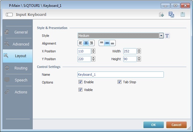 14. Continue to attribute values to the Input Keyboard control in the "General" tab.