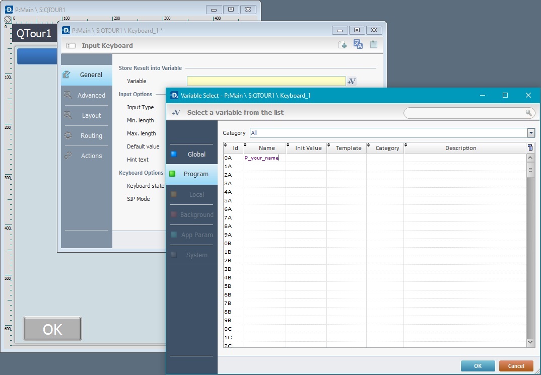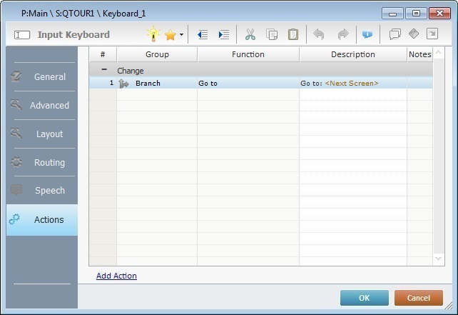 Ex: Click the Input Keyboard control and drag it onto the "QTOUR1" screen.