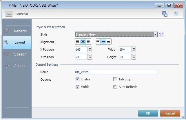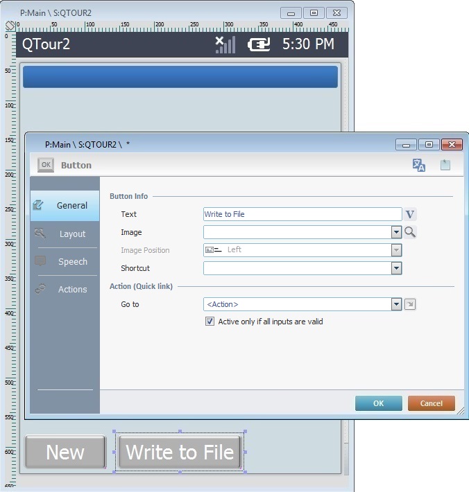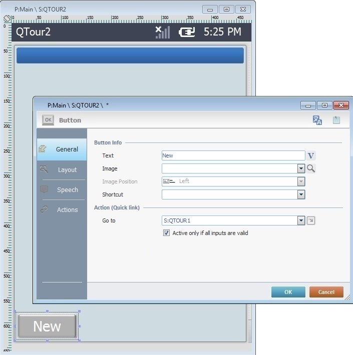 Ex: Click the Button control and drag it onto the "QTOUR2"screen.