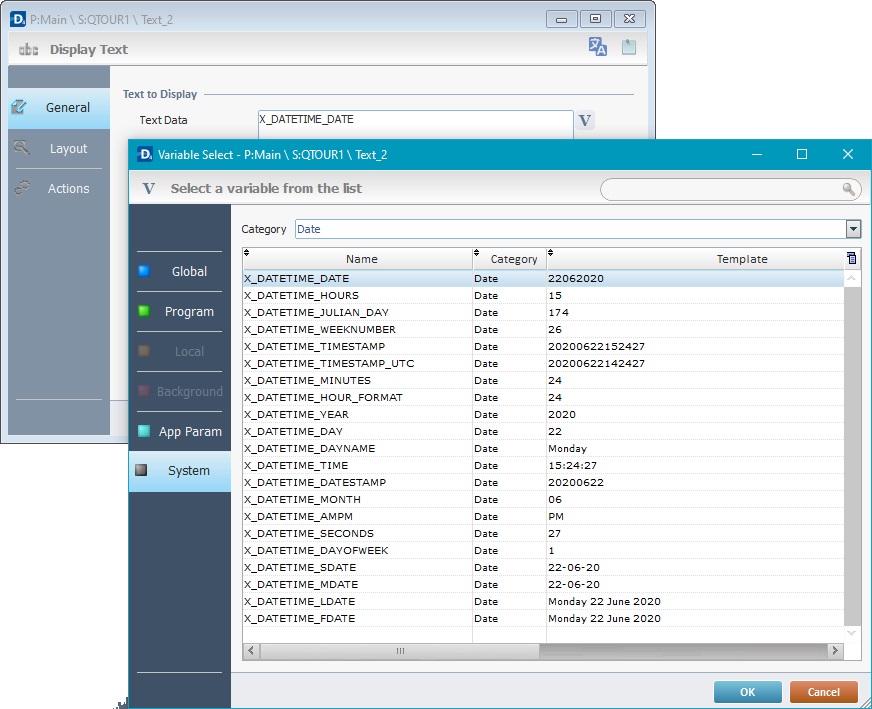 and select a "System" variable, in this case, "X_DATETIME_DATE".