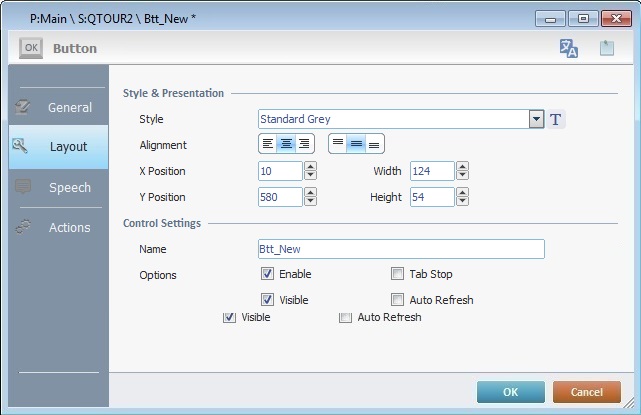 34. Go to the “Control” tab to add a second control to the "QTOUR2" screen and drag the required control onto the screen.