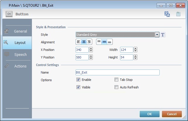 Ex: Define the text that will appear in the control by writing "Exit" in the "Text" box and maintain the options that appear in the illustration below:
