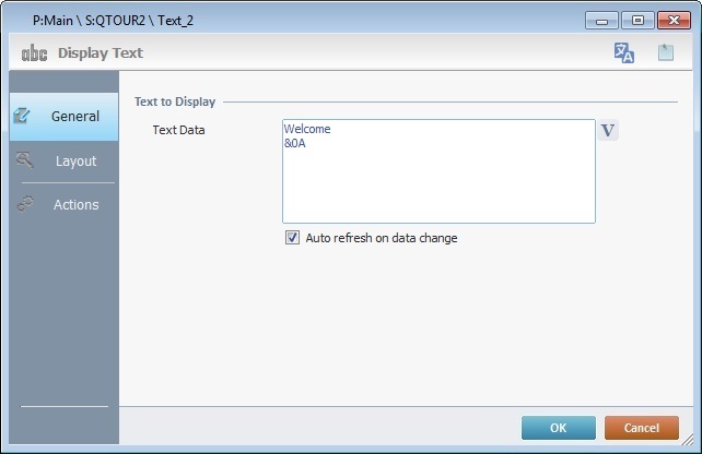 Ex: In the Text Data box, enter "Welcome[enter]&0A". This way, the word "Welcome" will be displayed along with the data from the "0A" variable.