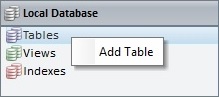 Right-click the "Tables" section, within that module, and click "Add Table" in the resulting menu.