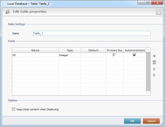 4. As an option, check "Keep Data content when Deploying" to ensure the sending of data along with the database structure. As a result, the data will be available when you upload the project to the device, use MCL-Simulator and/or MCL-Tracer to test/analyze the project.