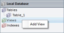 The new view is displayed in the "Views" section of the "Local Database" module.