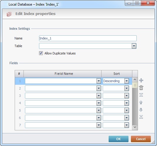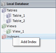 Select the table you want to create an index in. The drop-down list displays the tables that exist in the "Local Database" module. |