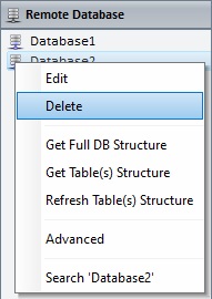 a. In the "Remote Database" module, right-click the remote database profile you want to delete and select "Delete" in the resulting menu.