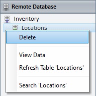 1. In the "Remote Database" module, right-click the table you want to delete and select "Delete" in the resulting menu.