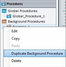 1. Open the “Procedures” module and right-click the background procedure you want to duplicate.
