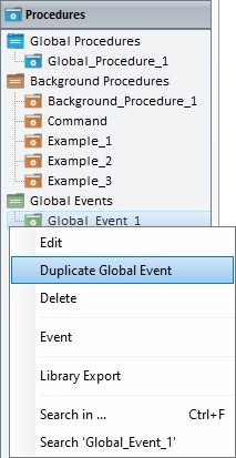 1. In the "Procedures" module, right-click the global event you want to duplicate.