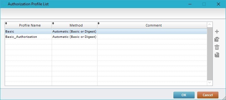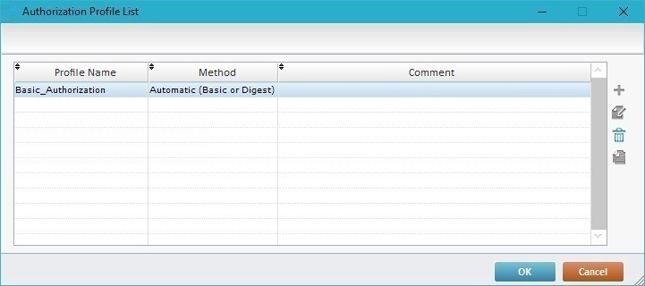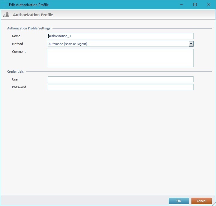 Proceed as follows to create an authorization profile with a Basic/Digest authentication - this type of authentication only requires user and password credentials.