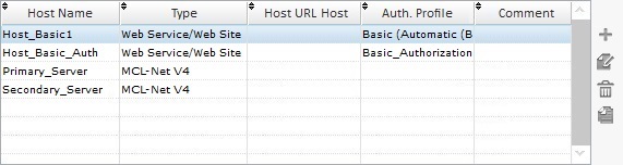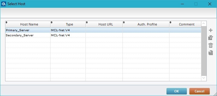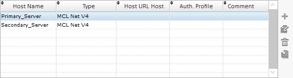 The "Edit Host Profiles" table includes the default Host profiles ("Primary_Server" and "Secondary_Server") and both use an MCL-Net V4 server.