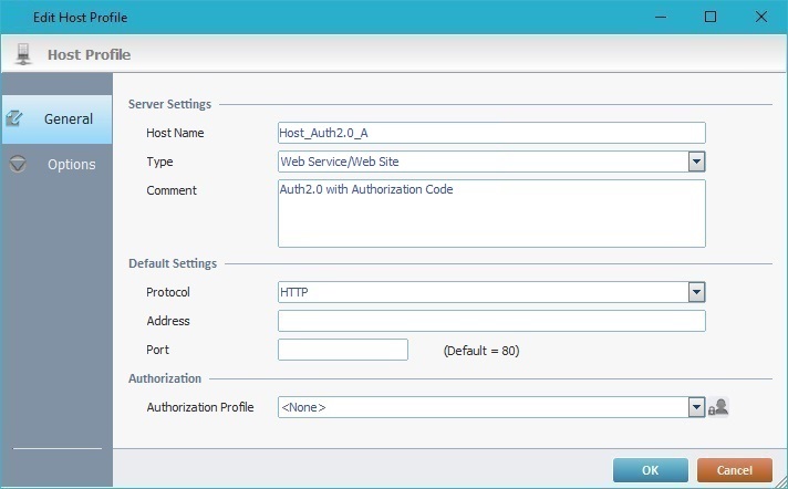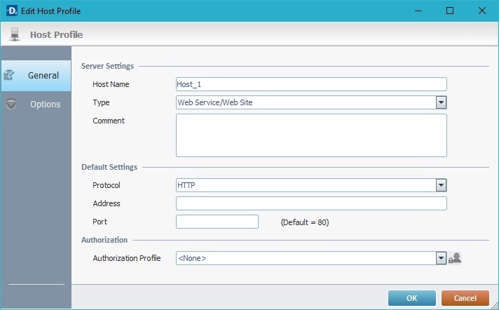 1. Start by creating a "Web Service/Web Site" type Host profile. If you need help, see Step-by-Step on Web Service/Web Site Host Creation.